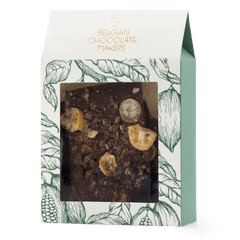 Tablettes artisanales de chocolat noir cassé au kumquat et aux éclats de cacao. Fabriquées avec du cacao de première qualité provenant des Philippines, elles offrent une expérience gourmande riche, fruitée et pleine de noisettes.