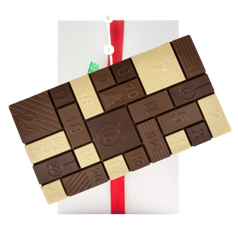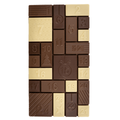Comptez jusqu'à Noël avec notre calendrier de l'Avent en chocolat au lait de 200 g, une création belge festive combinant un chocolat au lait crémeux et un joyeux motif de vacances, parfait pour partager la magie de chaque jour avant Noël.