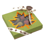 Discover our mix of autumn Belgian truffles in a green gift box. Handcrafted in Brussels, a seasonal selection of rich cacao delights, an elegant gourmet gift or indulgence to share.