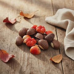 Enjoy Belgian chocolate autumn fruits 150g, artisan creations crafted with fine cacao. A seasonal gourmet gift that captures the flavors of fall.