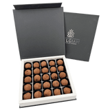 Enjoy our box of 25 Belgian chocolate truffles with rich cacao flavour, handmade in Brussels from ethical beans. A refined gift or gourmet indulgence.