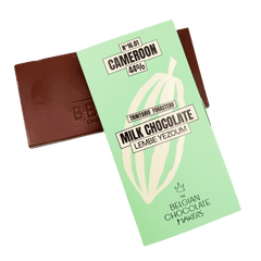 Cameroon Lembé Yézoum 44% milk chocolate, an exclusive single-origin bar handcrafted in Brussels. A 100g creation with refined notes and exceptional terroir.