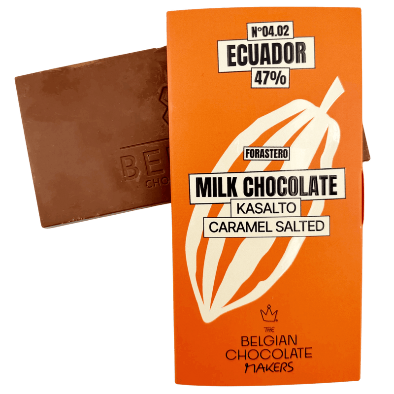 Indulge in our Kasalto Ecuador 47% milk chocolate with cassonade and a hint of salt, handcrafted in Brussels from ethical cacao. A gourmet balance of sweet and savory.