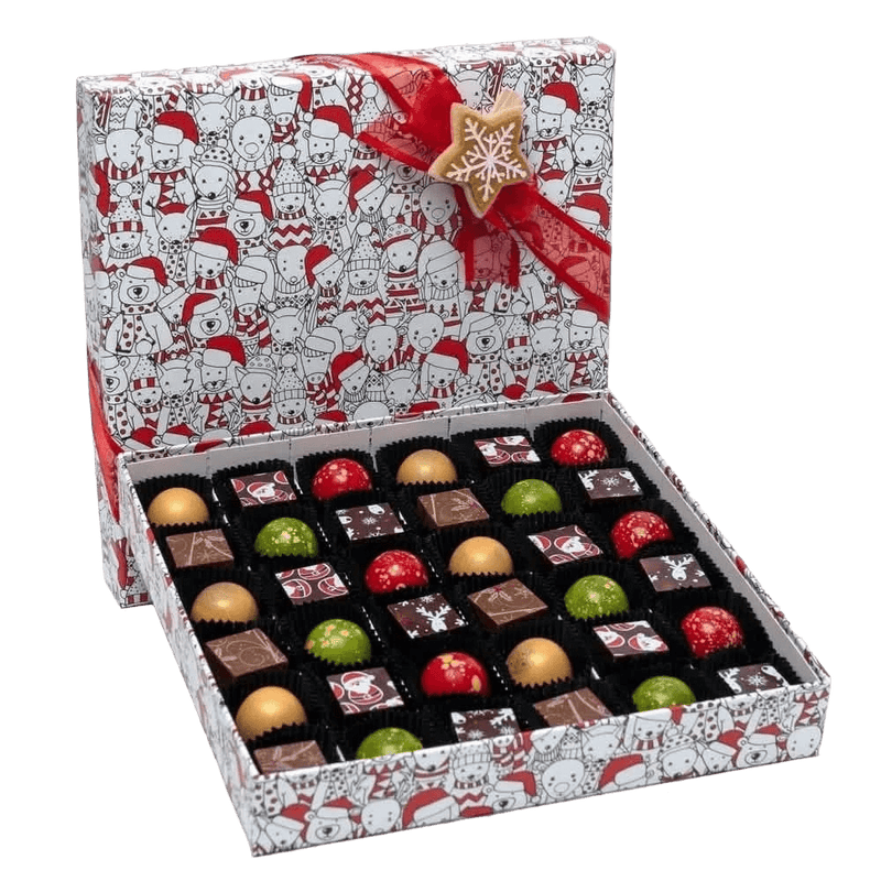 Celebrate the holidays with our Christmas box of 36 Belgian pralines, an elegant assortment of handcrafted chocolates made with premium cacao, perfect for gifting or sharing sweet festive moments with loved ones.