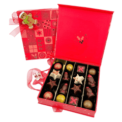Share the joy of Christmas with our Ho-Ho-Ho chocolate box, filled with 16 handcrafted Belgian pralines (240g). A festive assortment made with ethical cacao and artisanal passion in Brussels.