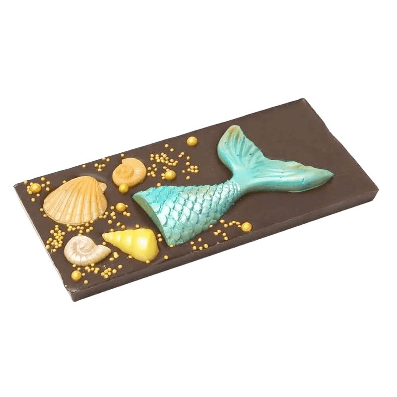 Discover our 125g dark chocolate bar with a playful mermaid design. Handcrafted Belgian chocolate, rich in flavor and perfect for gifting or seasonal treats.