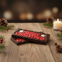 Spread holiday joy with our dark chocolate messaging bar 45g “MERRY CHRISTMAS”, handcrafted in Brussels by certified artisan chocolatiers. Made from smooth, ethical, and traceable cacao, a delightful Belgian chocolate gift for the festive season.