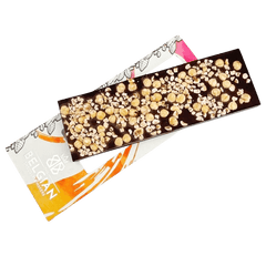 Indulge in our Fantasy dark chocolate bar 550g, loaded with crunchy Piedmont hazelnut chunks. A gourmet oversized Belgian creation, perfect for gifting or sharing.