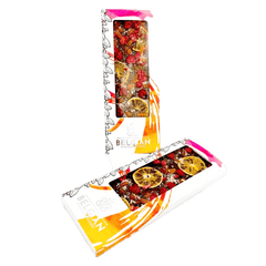 Fantasy dark chocolate bar 550 grs with raspberry, orange and almond chunks