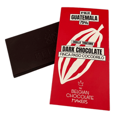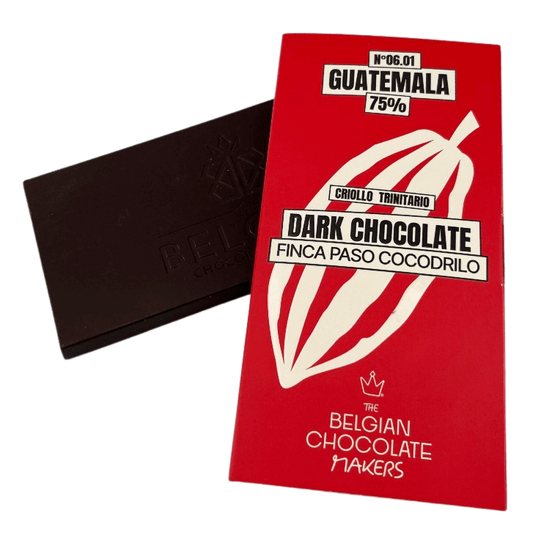Guatemala Finca Paso Cocodrilo 75% dark chocolate, an exclusive single-origin creation handcrafted in Brussels. A refined bar with elegant fruity depth and exceptional terroir.