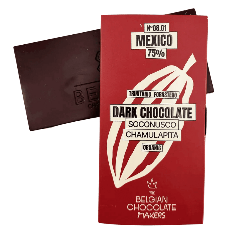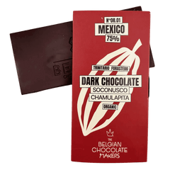 Mexico Soconusco Chamulapita 75% dark chocolate, handcrafted in Brussels from single-origin cacao. A rich bar with refined notes of fruit and spice.