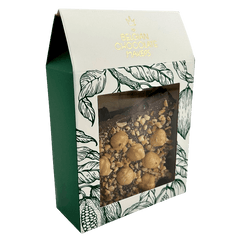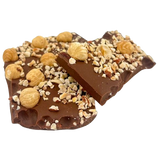 Handcrafted milk chocolate broken bars with hazelnut. Made with fine cocoa from Haiti, delivering a smooth, fruity, and nutty gourmet delight.