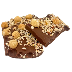 Milk chocolate broken bars with hazelnuts