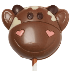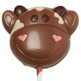 Handcrafted milk chocolate lollipop shaped like a cow. A fun, creamy, and delicious treat for kids, parties, or a sweet Belgian chocolate gift.