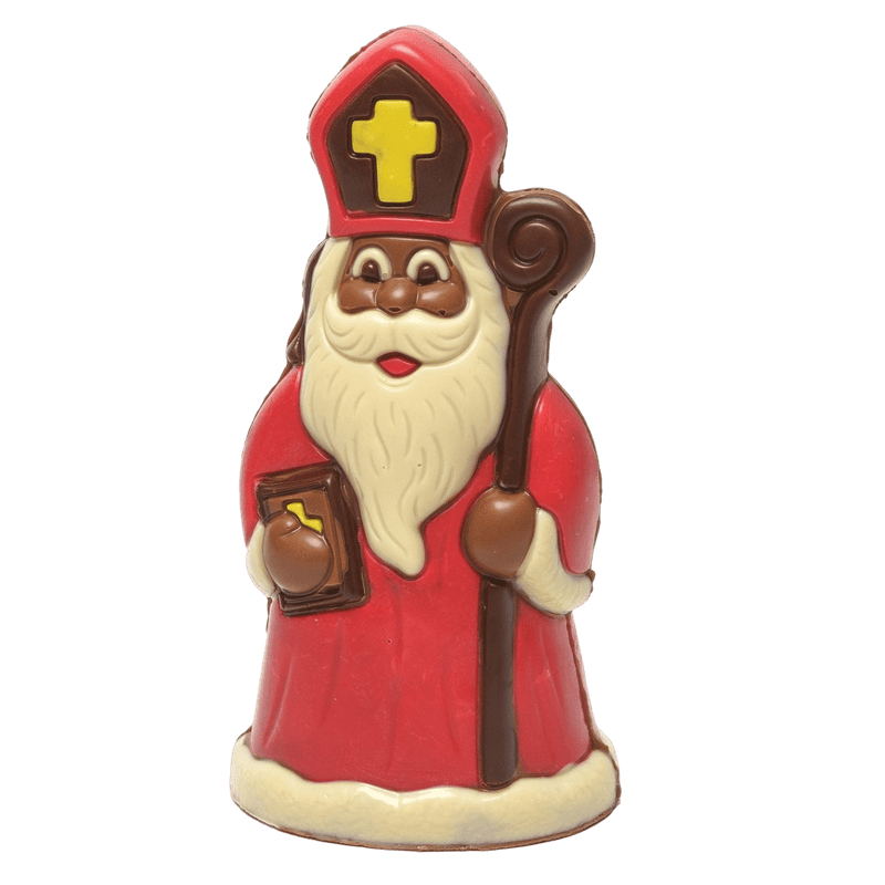 Discover our 225g milk chocolate Saint Nicholas with sceptre, handcrafted in Belgium with rich, smooth cocoa, a festive masterpiece symbolising tradition and pure indulgence.