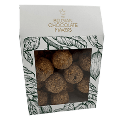 Indulge in our 160g pouch of Belgian chocolate truffles with speculoos. Handcrafted in Brussels, combining rich cacao with spiced biscuit flavors for a gourmet delight.