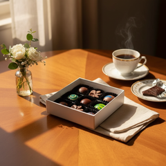 Dive into summer with our tropical sea box of mixed Belgian pralines (135g), handmade in Brussels from ethical bean-to-bar chocolate. A sunny selection inspired by the colors and flavors of the sea.