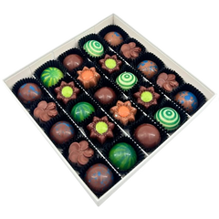 Ingredients: Sugar, cocoa butter, cocoa mass, milk powder, pear puree, strawberry puree, blueberry puree, passion fruit puree, kalamansi puree, almond, hazelnut, orange blossom water extract (orange blossom hydrosol, ethanol), lime juice, cream, sorbitol, glucose syrup, butter, Madagascar bourbon vanilla, sunflower lecithin, salt, potassium sorbate.
