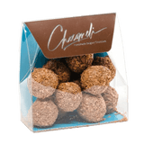 Savor our 140g pouch of Belgian chocolate truffles with feuilletine. Handcrafted in Brussels, combining smooth cacao with crisp caramelized flakes for a truly indulgent crunch.