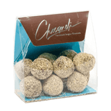 Indulge in our 140g pouch of Belgian chocolate truffles with pistachio. Handcrafted in Brussels, combining rich cacao with delicate nutty notes for a gourmet experience.