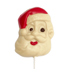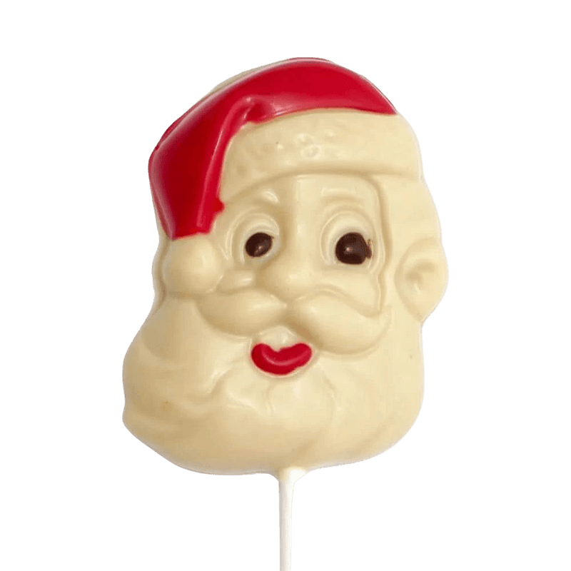 Festive white chocolate Santa Claus lollipop, handcrafted in Brussels with premium Belgian chocolate. A joyful Christmas treat for kids and chocolate lovers alike.