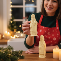 Enjoy our Saint Nicholas caraques (2×35g) in white chocolate, handcrafted in Belgium from fine chocolate, elegant festive disks combining artisanal quality, rich flavour, and holiday tradition.