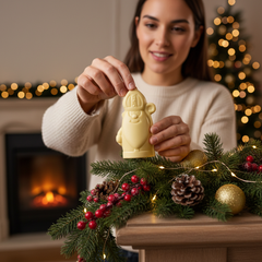 Celebrate the season with Saint Nicholas 150 g white chocolate, handcrafted in Brussels for a smooth and indulgent festive treat.