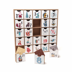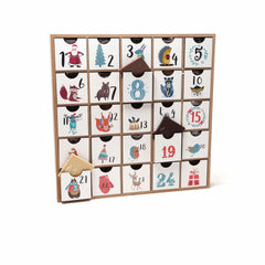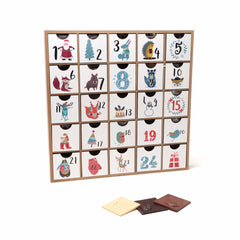 Wooden calendar with 24 different orgiins of premium cacao to discover.