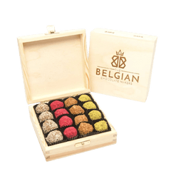 Buy our wooden gift box with 16 Belgian chocolate truffles. Handcrafted in Brussels, this 240g gourmet gift box is perfect for chocolate lovers.