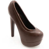 Elegant XL high heel made of dark chocolate, 180g, handcrafted in Brussels with rich cacao beans from Philippines. A unique Belgian chocolate gift blending fashion and fine craftsmanship.